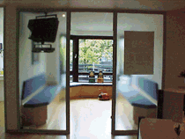 Ein helles und frendliches Wartezimmer mit einem wunderschönen Blick auf den Kaiserwerther Klemensplatz entspannt und beruhigt.